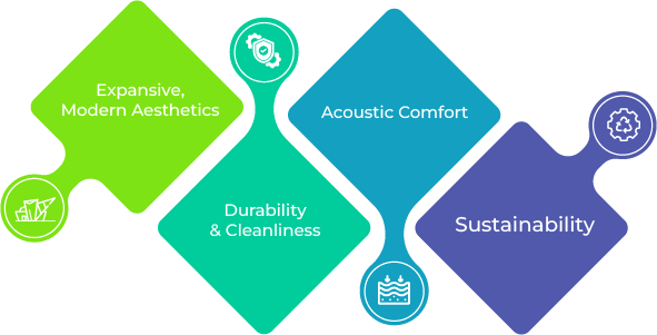 Often used in open-plan offices, conference rooms, large retail spaces, auditoriums, and modern commercial interiors where a sleek expansive ceiling plane is desired. Their acoustic properties make them suitable for noise management in educational and healthcare facilities.
