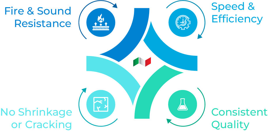Italia Gypsum One Coat Gypsum Plaster is a Machine gypsum-based plaster created to offer a better approach to traditional plastering. Its vermuculite-based Beta-Hemihydrate formulation ensures working and setting characteristics. It can deliver thrice more insulating capacity than others. As the name suggests, you only need a single coat of One Coat Gypsum Plaster to the brick wall and its done.